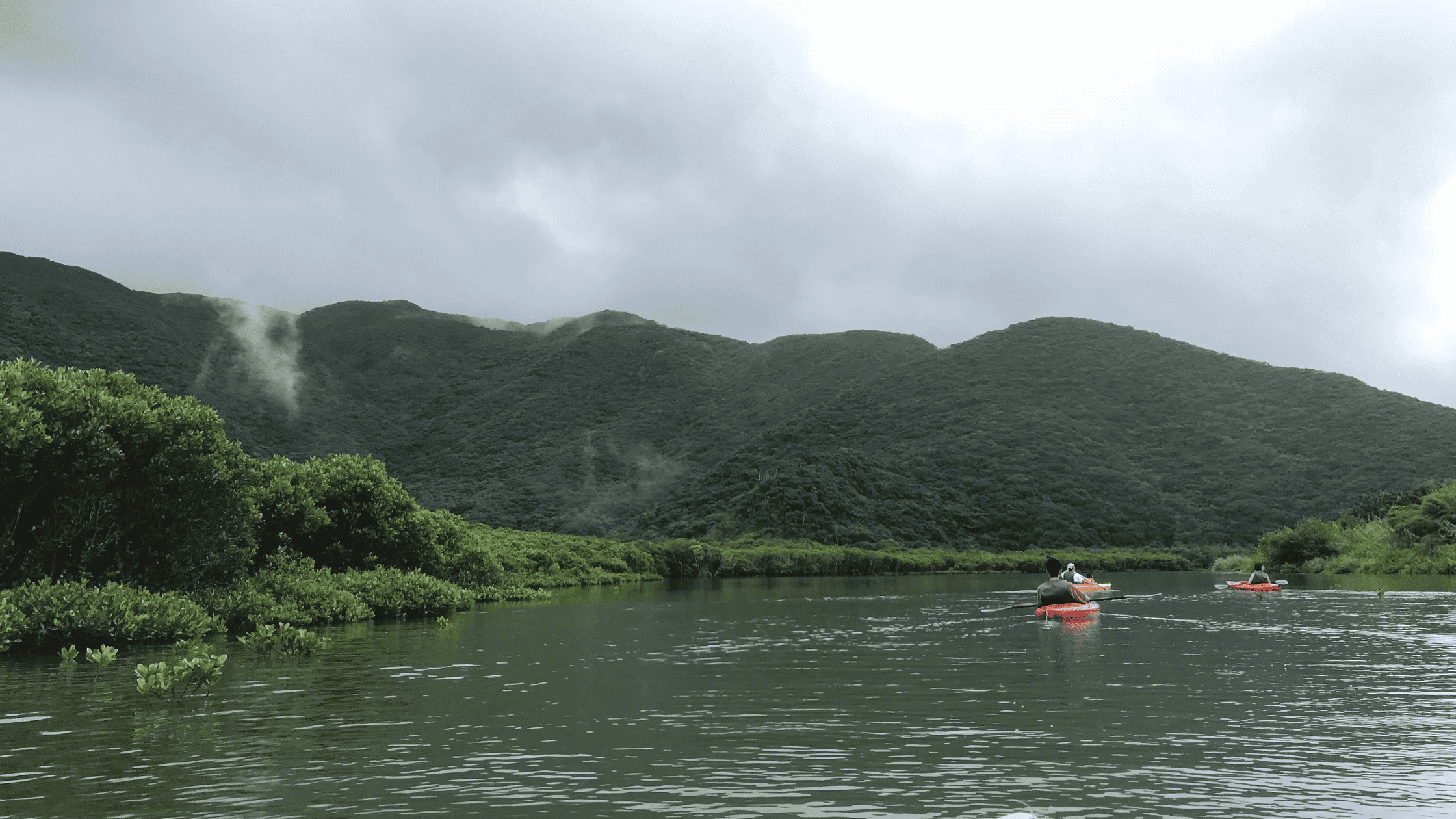 奄美大島には日本で2番目に大きなマングローブの森が広がり、満ち引きに応じて変化を見せる美しい世界の中、マングローブカヌーで冒険するアクティビティは、通年を通し、高い人気です。雨の季節には、マングローブの緑が一層鮮やかに輝き、一際異なる景色を堪能することができます。雨は山や川を経て海へと流れ、また空へと循環します。その水の循環に想いを馳せ、カヌーをこげば、一味も二味も異なる世界が見えることでしょう。また、ガイド付きツアーでは、さらに詳しくマングローブの生態や生き物について学ぶことができ人気のあるアクティビティです。