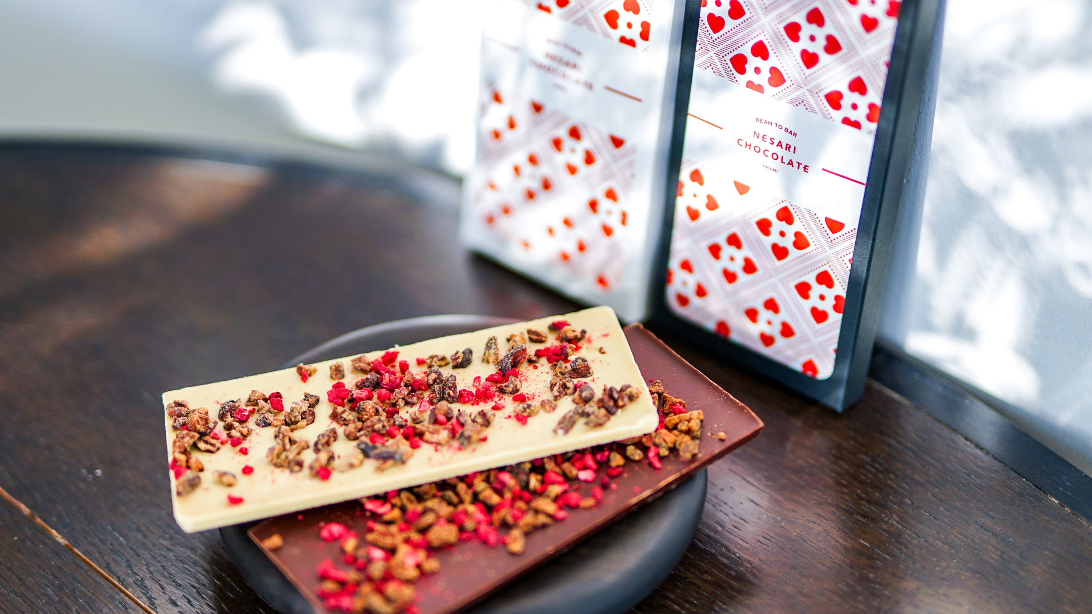 心温まる季節を迎え、奄美大島で作られた贅沢なネサリチョコレート(@nesari_chocolate)をお楽しみください。ネサリチョコレートはカカオ豆からチョコレートになるまでの全ての工程を工房で一貫して製造しています。島内産のサトウキビから作られる純黒糖やキビ糖を使用し厳選された原材料のみを使用したチョコレートです。その濃厚で純粋な味わいは、自分へのご褒美や大切な人へのプレゼントに最適。特にバレンタインブレンドチョコレートは、ダークチョコレートと黒糖ホワイトチョコレートの2種類から選べ、どちらもカカオニブとラズベリーのトッピングが色鮮やかにあしらわれたこの季節を華やかに演出する限定品で、Miru Amamiにて好評販売中です。