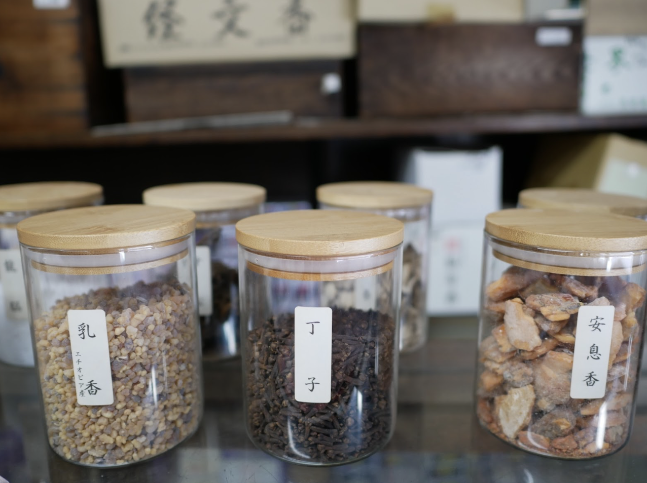 Raw materials take center stage here. Rare woods for incense: agarwood and sandalwood are carefully displayed in an atelier-like setting. Yamadamatsu offers a wide range of incense scents, from timeless classics to more contemporary blends that capture the essence of flowers and the seasons. In addition to these, the shop carries raw materials, powders, and even electric incense burners.